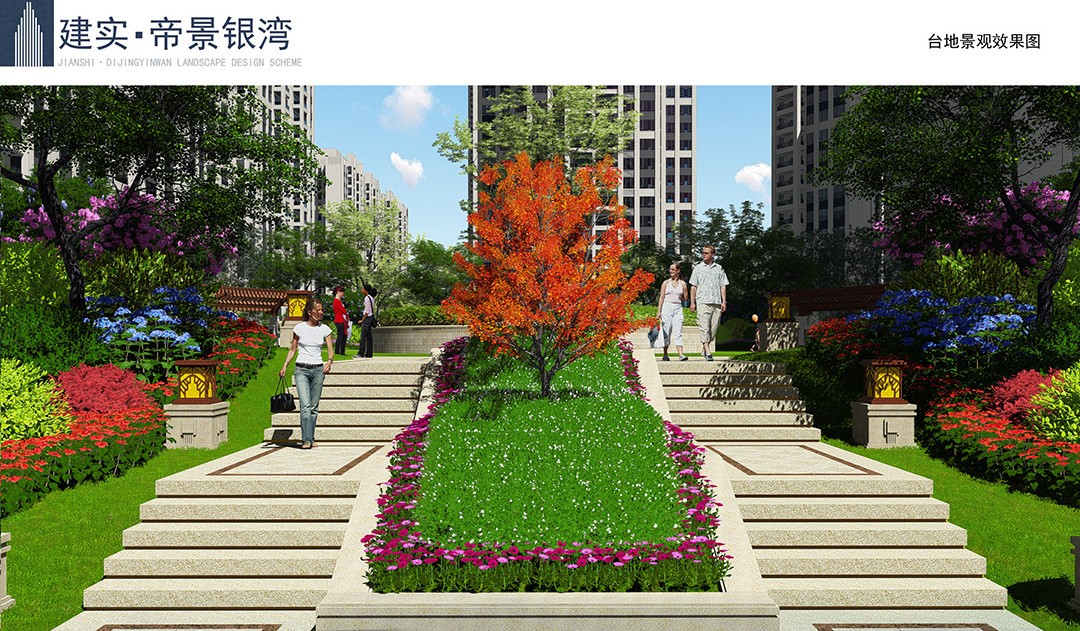 本項目在景觀布局上采用圍合式布局,形成一個集中式的中庭花園,力求每家每戶有景可賞、有景可游。使得住戶得到最大化的景觀空間,營造綠色生態生活環境,公園式生活漫步空間。
