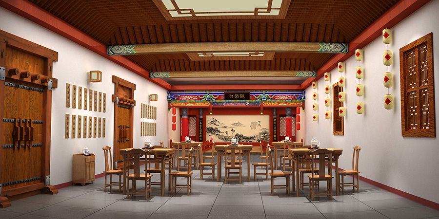 在建筑設計上,汲取中國古代曲藝建筑精髓,廟宇樂樓、瓦市勾欄、宅第舞臺等元素融匯其中,建筑上屋脊、壁柱、梁枋、門窗、屏風及其它細小構件上運用的雕刻、彩繪、裝飾都或繁或簡的表達著中古傳統曲藝魅力。
